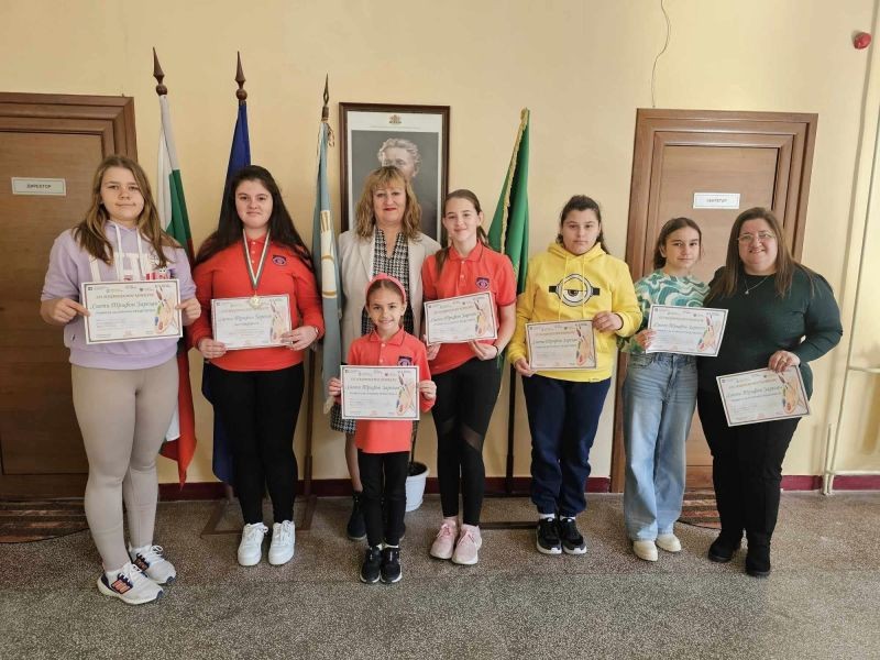 Сияна Василева от 1. "а" клас, Дария Танкова от 5. "а" клас, Александра Анке от 7. "г" клас, Стефания Георгиева от 6. "в" клас, Рая Динева от 7 "б" клас и Ема Бачева 7. "в" клас взеха награди за отлично представяне.