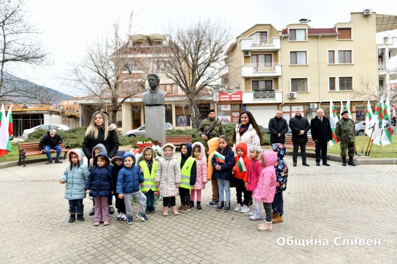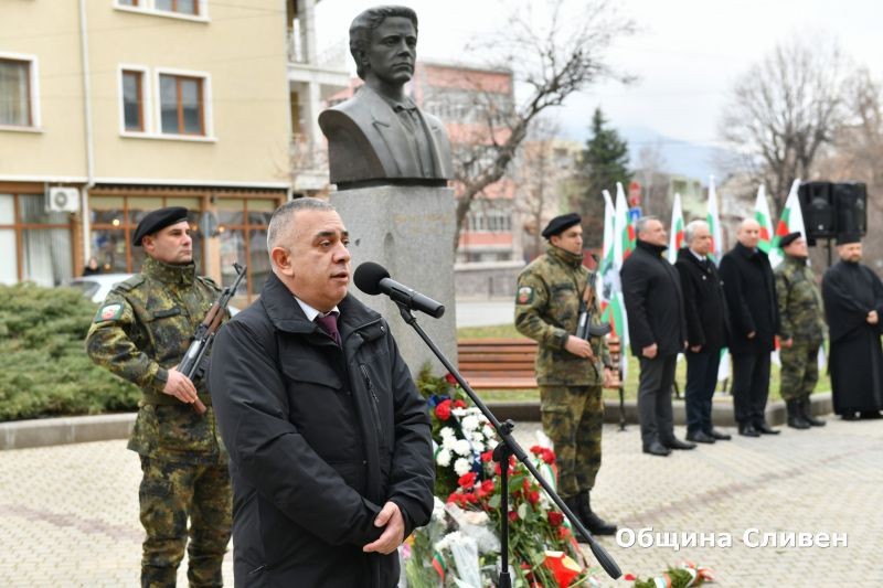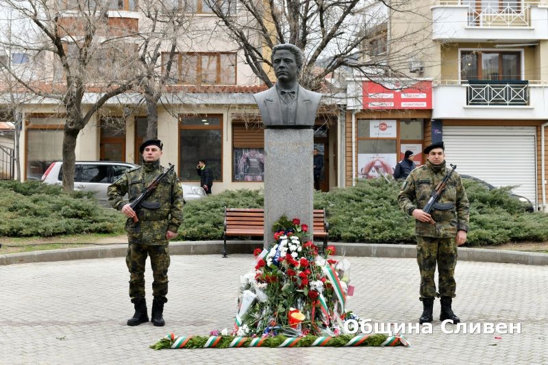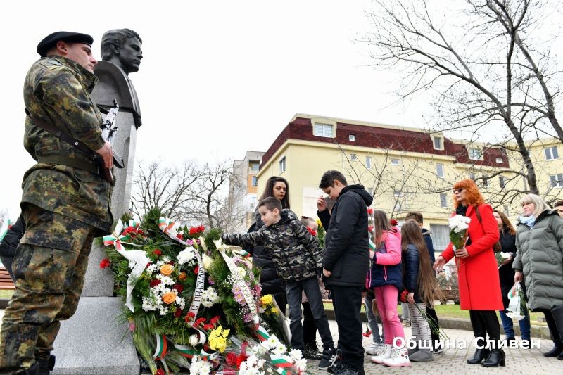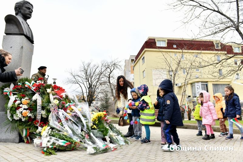 На площада прозвуча песента „О, майко моя, родино мила…“ по известното Ботево стихотворение. Актьорът Димитър Марков припомни моменти от живота и от деятелността на Левски, свързана със Сливен. „Днес възвеличаваме подвизите и смелостта на Васил Левски, които не само ни вдъхновяват, но и ни предизвикват да се стремим към по-добро общество“, заяви от името на своите връстници Димитър Митев, секретар на Младежкия общински съвет.