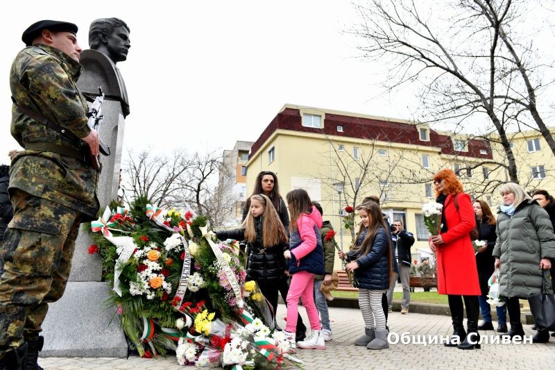 На площада прозвуча песента „О, майко моя, родино мила…“ по известното Ботево стихотворение. Актьорът Димитър Марков припомни моменти от живота и от деятелността на Левски, свързана със Сливен. „Днес възвеличаваме подвизите и смелостта на Васил Левски, които не само ни вдъхновяват, но и ни предизвикват да се стремим към по-добро общество“, заяви от името на своите връстници Димитър Митев, секретар на Младежкия общински съвет.