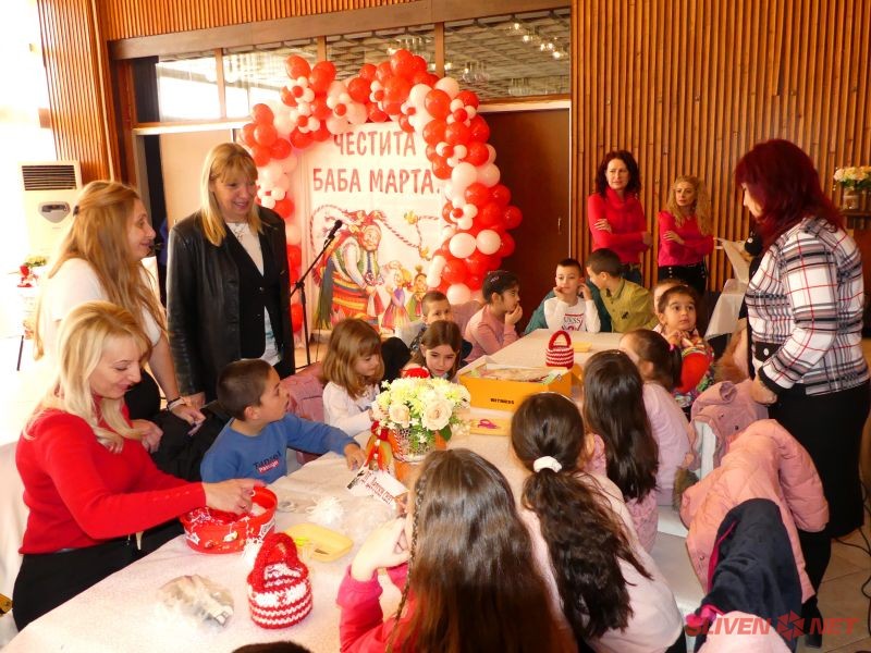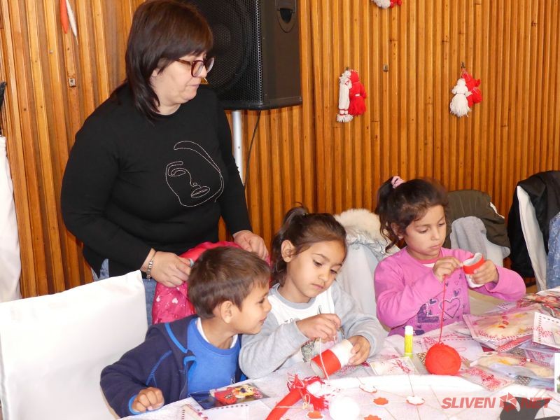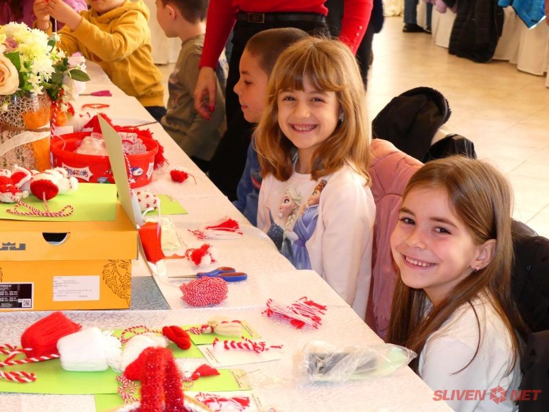 Деца от детските градини в гр. Нова Загора – „Надежда“, „Слънчице“, „Детски свят“, „Бодра смяна“ и „Тракийче“ и Център за обществена подкрепа – Нова Загора се събраха по специален повод на 26 февруари в празнично украсения Клуб на дейците на културата. Те откликнаха с голямо желание на поканата на кмета на Община Нова Загора Галя Захариева да се включат в работилница за мартеници. Най-милата и усмихната баба – Баба Марта, беше техен гост. Присъстваха и домакините – кметът г-жа Галя Захариева със своя екип от заместник-кметовете Иванка Михова, Нина Генчева и Ивайло Енев и секретаря на Общината Ангел Стойчев.