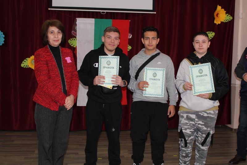 Учениците в прогимназиален и гимназиален етап се съревноваваха в направата на постер на тема: „ Не на насилието – Да бъдем приятели!“. Надпреварата спечелиха учениците от 9. а клас Габриела Стефанова, Веселин Стоянов, Николай Станчев и Венцислав Колев.