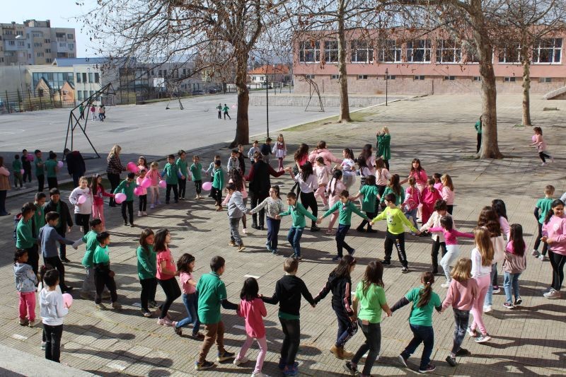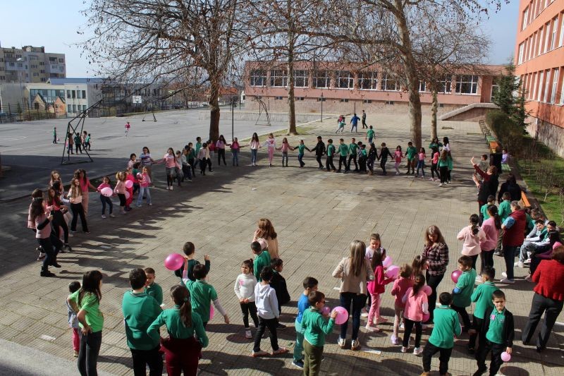 Отбелязването на „Деня на розовата фланелка“ завърши с български народни хора, в които се включиха учениците и педагогическия състав.