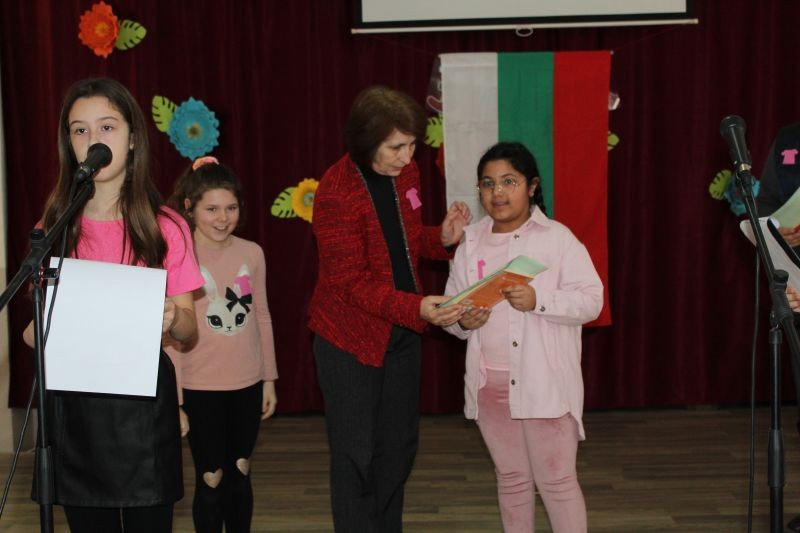 Учениците от начален етап се представиха с литературно-музикална програма, в която отправиха своите послания против агресията и тормоза в училището.