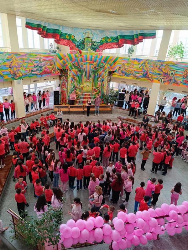 За поредна година всички заедно отбелязаха последната сряда на месец февруари, превърнала се в символ на доброто и толерантността в училище - „Деня на розовата фланелка“.