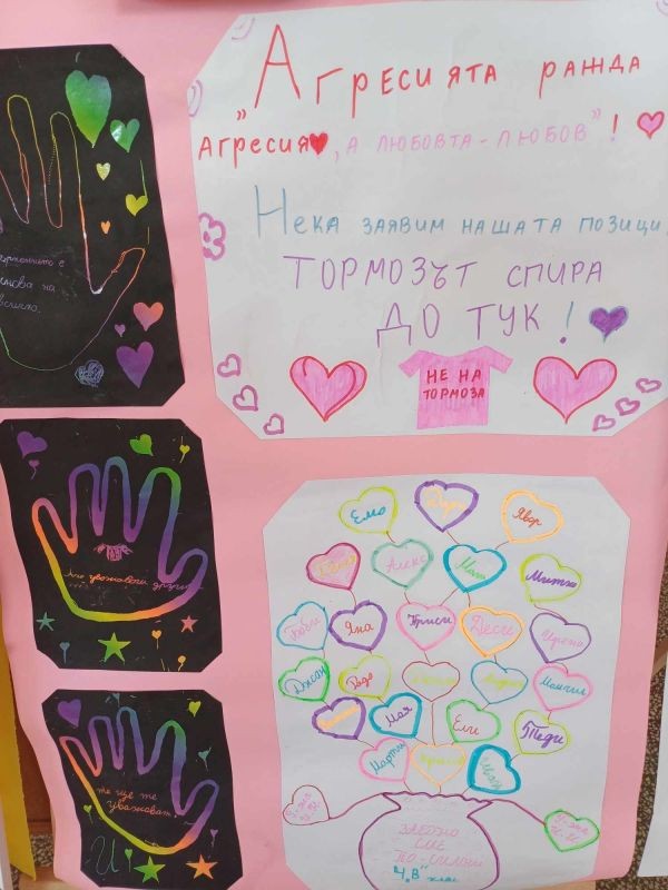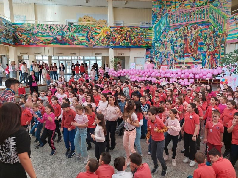 С прекрасни послания за приятелство, добротворчество, съпричастност, музика, танци, много усмивки и добро настроение участниците в своеобразния празник показаха своята позиция против агресията, насилието и тормоза. Ученици и учители се обединиха около инициативата и за пореден път създадоха позитивна атмосфера в училище, изготвяйки тематична изложба.