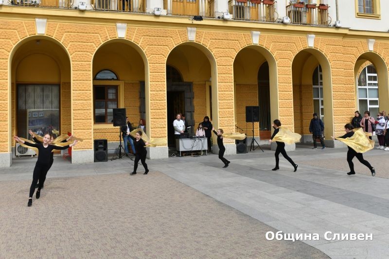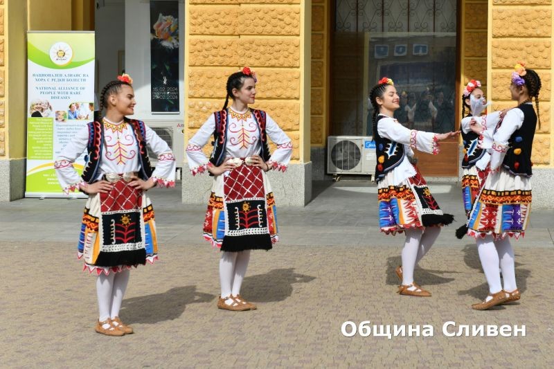 Кулминацията на днешния ден бе концертът пред сградата на Общината, в който децата на Сливен предадоха на публиката своя урок по приятелство и толерантност към хората, засегнати от рядко заболяване. Сред тях бяха Жаклин, Тиана и Кристияна от Клуб за поп и рок изпълнители „Ритъм“ при Военен клуб – Сливен, с вокален педагог Елена Пеева, Dance Studio “Barbie” при Военен клуб – Сливен, с ръководители Силвия Терзиева и Искра Стойчева. Със свои изпълнения се включиха още Група за модерни танци „11 стъпки“ при Средно училище „Константин Константинов“, с ръководител Радина Байнашева и Детско-юношески фолклорен ансамбъл „Тракийче“ при Център за подкрепа за личностно развитие – Детски комплекс – Сливен, с ръководители Виолина Попова и Михаил Чанев. Диригент на хора е Маруся Дакева.