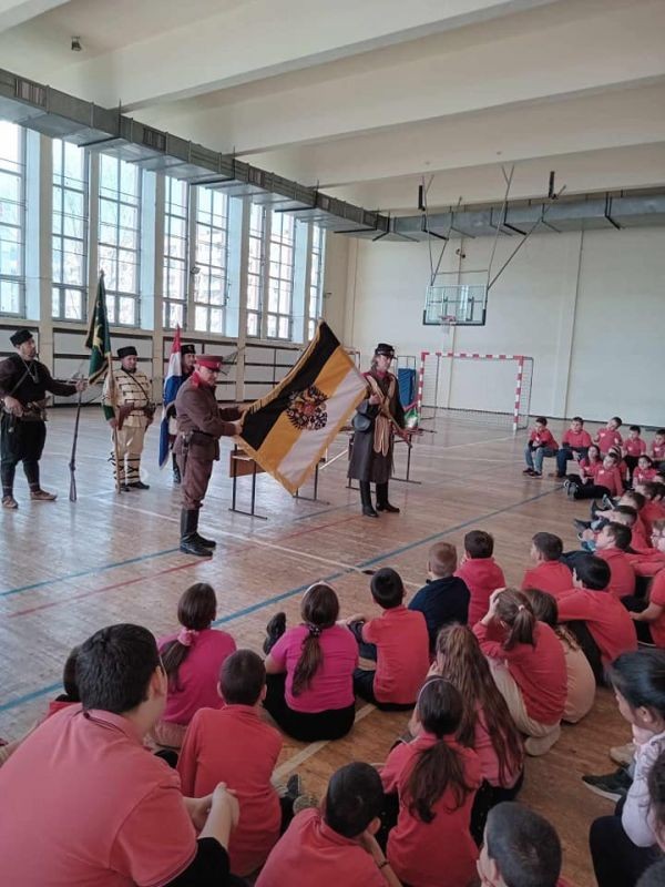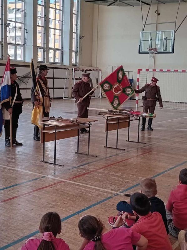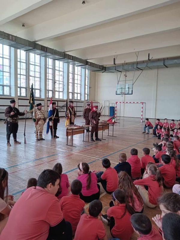 Представител на дружеството запозна учениците с униформените облекла и оръжието, използвани от хайдутите, четниците, участниците в Балканската война и Освободителната Руско-турска война.