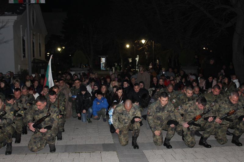 Ритуалът се проведе вечерта от 19 часа на централния площад „Хаджи Димитър“ и в него участие взеха представителни роти от Центъра за подготовка на специалисти и четнически отряд и ученици от ППМГ „Добри Чинтулов“.