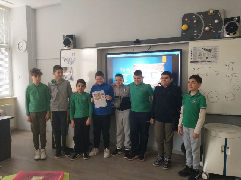 „Пи“ (π) е едно от най-важните и интересни числа в математиката. Тази година празникът беше под надслов „Магията на числото Пи“. Учениците от 5.а клас откриха част от красотата и тайнството му.