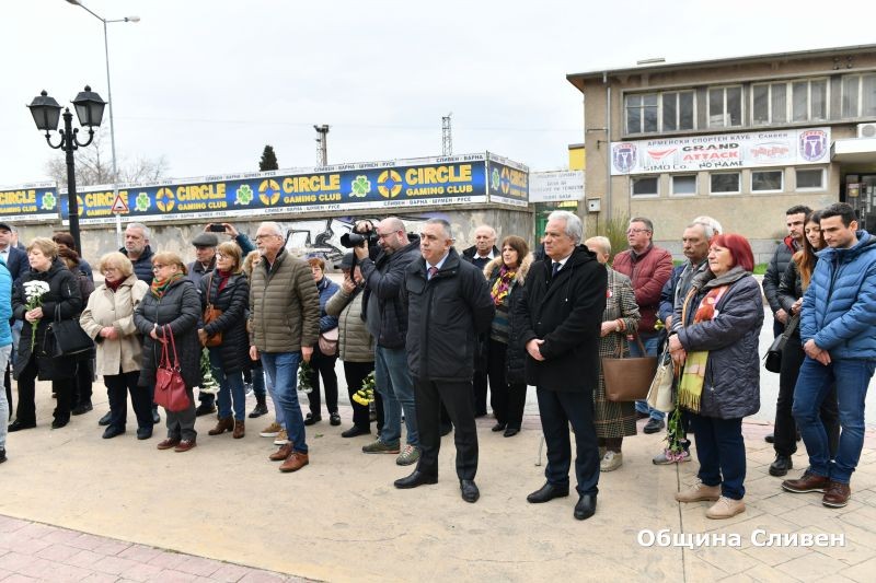 В края на церемонията цветя пред новия паметник положиха кметът Стефан Радев, председателят на Общински съвет-Сливен Димитър Митев, областният управител Маринчо Христов, Ротари клуб, семейство, близки и признателни граждани.
