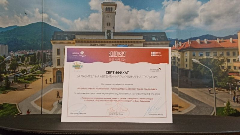 По време на презентацията на Сливен се представиха сборниците от поредицата „Вкусни пътешествия из Сливенския край“, с автор Дора Куршумова. Домакин на сливенската софра бе инж. Стоян Марков, а ястията презентира Мая Иванова - ръководител на Крепост „Туида“. Шеф-готвачите оцениха изключително високо „вкусът“ на Сливен и проявиха интерес към традициите в сливенския край. Те оцениха високо представянето на Сливен и възможностите за гастро и културен туризъм. В рамките на изложението Община Сливен получи сертификат за „Пазител на автентичната кулинарна традиция“.