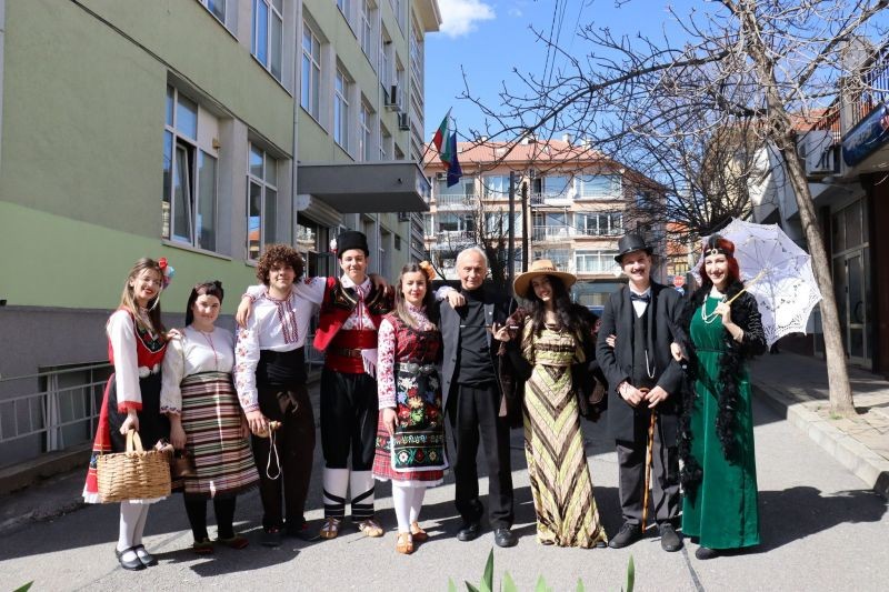 На 18 март в класните стаи на Хуманитарна гимназия „Дамян Дамянов“ участниците в Клуб „Памет“ представиха „жива картина“ на традиционните облекла в Сливенско от края на XIX и началото на XX век. Идеята за провеждането на Ден на историята в гимназията бе на г-н Валери Милков, който старателно и с внимание към детайлите подготви представянето на цялата сцена. За костюмите и аксесоарите се погрижиха самите участници в „живата картина“. Историята оживя с показаните всекидневни и празнични селски носии и с традиционното облекло за гражданите, а Ванеса Иванова от XIа клас и Мартин Димитров от XIб клас в ролята на водещи насочваха вниманието към отделни елементи от облеклото и техните специфични наименования. В края на представянето г-н Валери Милков разказа за първата „жива картина“, създадена в България през 1891 година и представена пред княз Фердинанд.