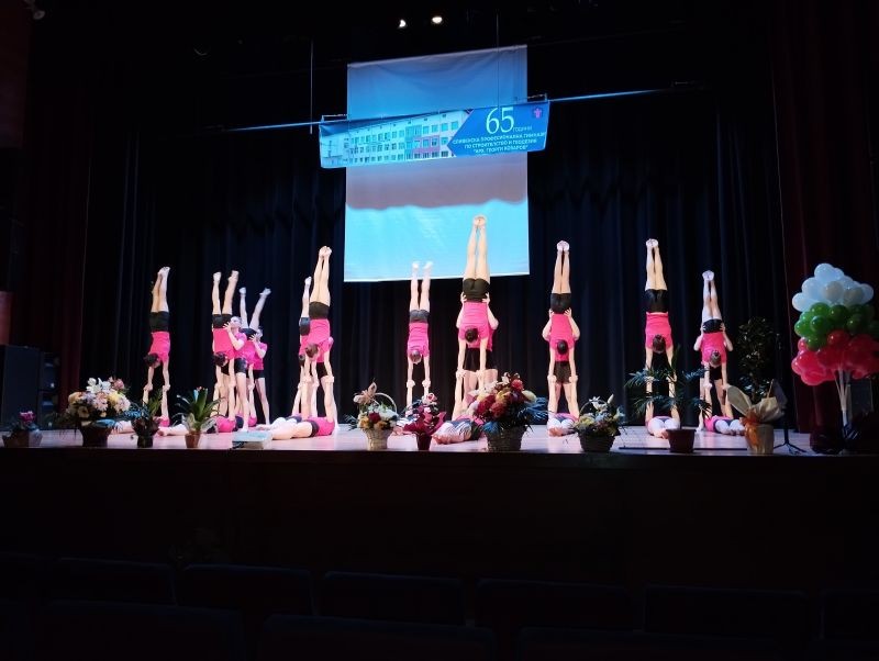 В залата прозвучаха и още поздравителни слова, а гостите на юбилея се насладиха на танцовата програма на младежкия фолкорен ансамбъл „Браво“, на артистичните умения на момичетата от клуба по спортна акробатика „Стефан Данчев“ с треньор Виолета Бинева, както и на музикалните изпълнения на възпитаниците на гимназията.