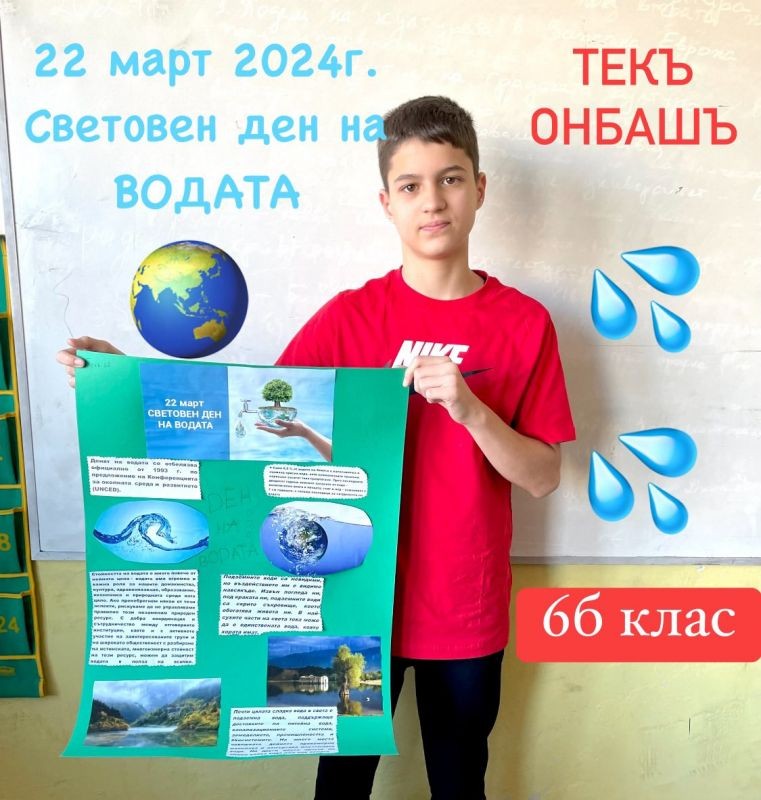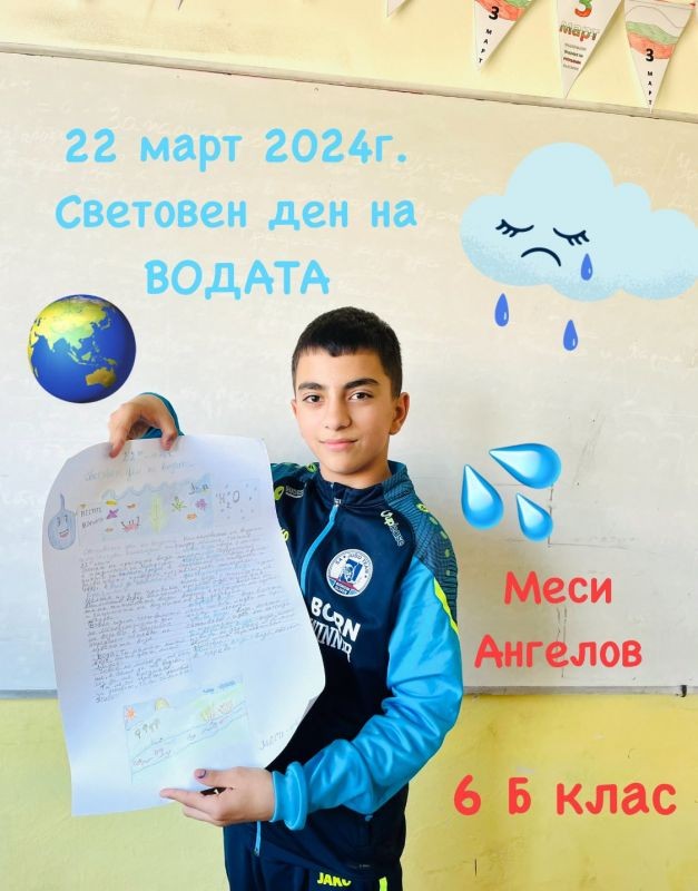 Всяка година на този ден отбелязваме Световният ден на ВОДАТА. Ценим ли я, пестим ли я, използваме ли я с подобаващата отговорност? На тези и други въпроси отговаряха учениците от 6 Б клас.