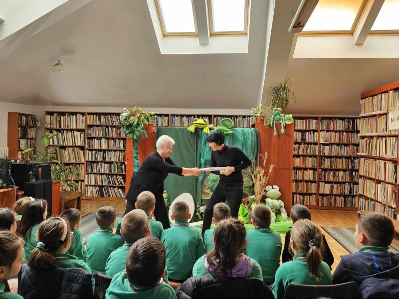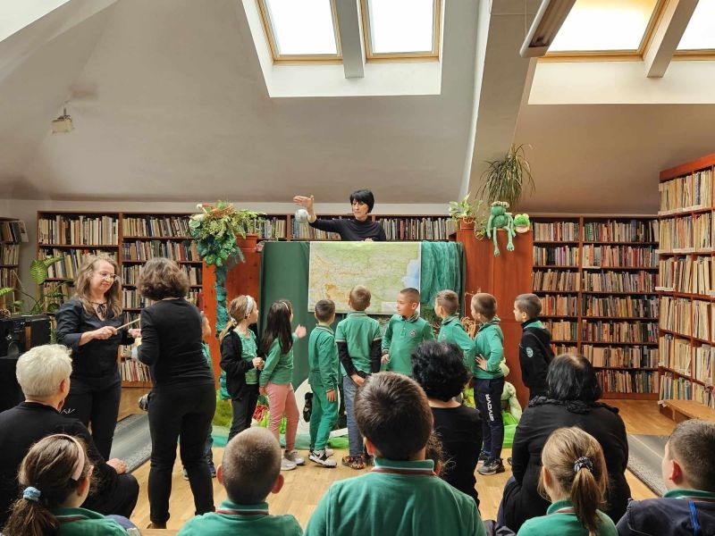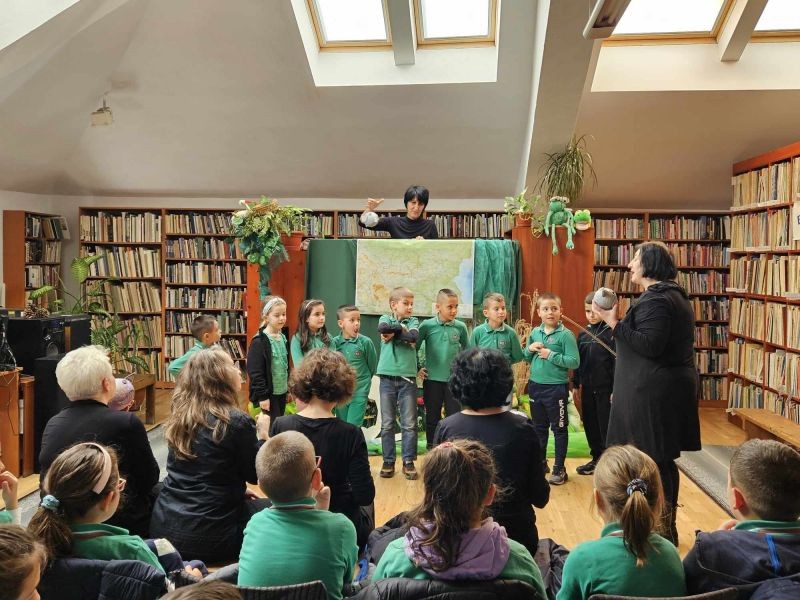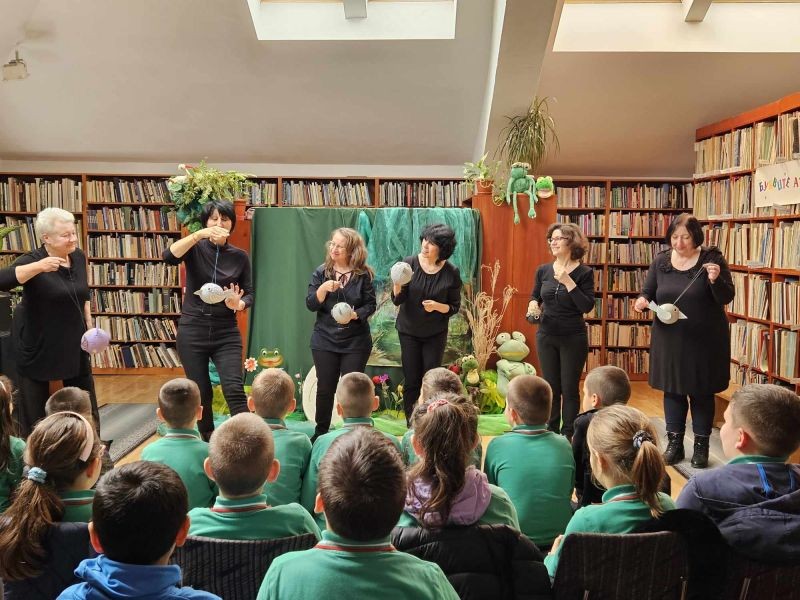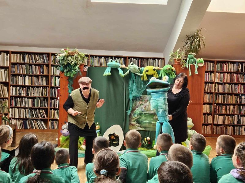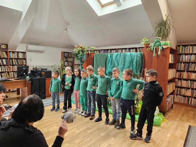 Днес, учениците от първи клас посетиха Регионалната библиотека "Сава Доброплодни" и се насладиха на прекрасното представление "Във вълшебния свят на приказките". Пред тях оживяха героите на Йордан Радичков от "Ние, врабчетата" и "Малки жабешки истории".