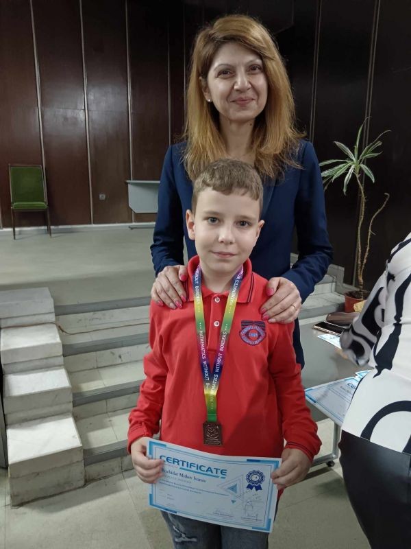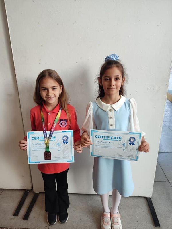 От първи клас отличени с бронзови медали са Сияна Василева от 1. "а" клас и Максим Митев от 1. "г" клас с класни ръководители г-жа Гергана Стоянова и г-жа Жана Ташева.