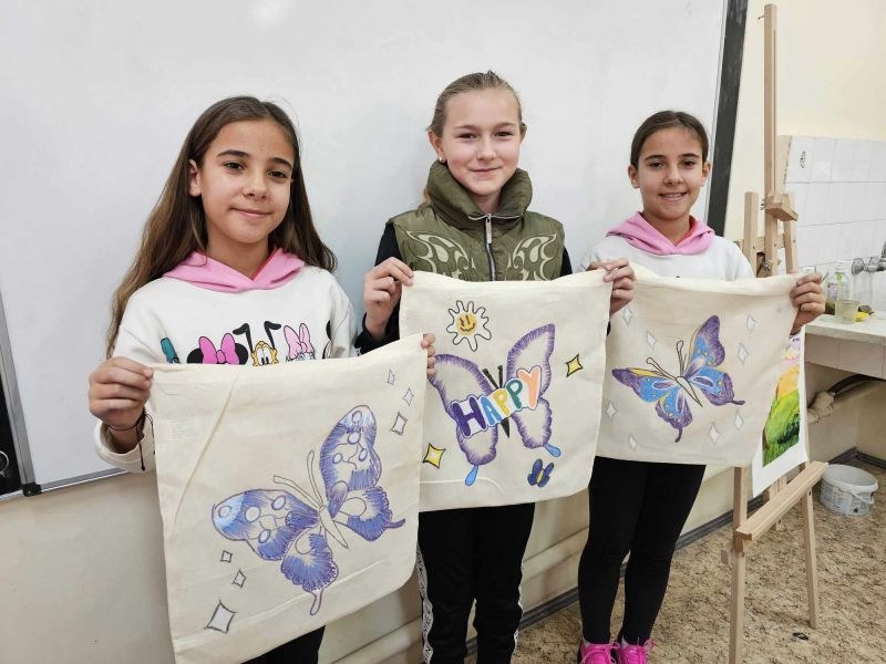Вдъхновяващ и ползотворен бе месец март за учениците от ОУ "Елисавета Багряна". В продължение на няколко дни десетки деца участваха в арт ателиета, в които рисуваха върху торбички от текстил. Те натрупаха умения, много положителни емоции и спечелиха нови приятелства.
