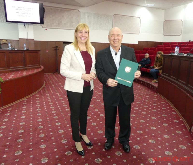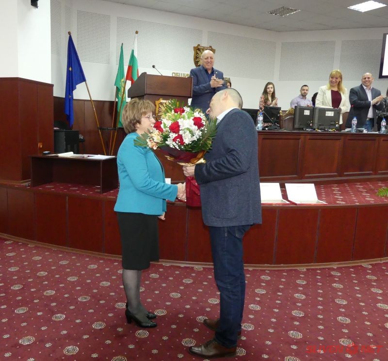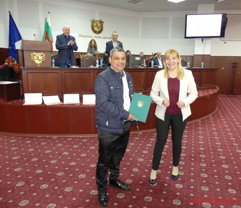 На 28 март Общински съвет Нова Загора проведе своето поредно редовно 8-мо заседание. То беше открито по надлежния ред от председателя д-р Константин Тачев, който предостави думата на кмета на Общината Галя Захариева. Тя се обърна към аудиторията в залата на Общинския съвет, сред която бяха заместник-кметовете Иванка Михова и Ивайло Енев, секретарят на Общината Ангел Стойчев, общински съветници, кметове на населени места, специалисти от общинска администрация, граждани: „Днес имаме няколко повода за топли сърдечни поздрави. Първо искам да изкажа огромно благодаря на един човек, който е свързан повече от 32 години с историята на Общински съвет Нова Загора – Славия Митева, която днес присъства на своето последно заседание като служител в общинска администрация.“ С голямо уважение за нейната дългогодишна всеотдайна дейност, председателят на Общинския съвет д-р Константин Тачев ѝ поднесе букет. Кметът на Общината Галя Захариева ѝ пожела най-ценното - да бъде здрава. Г-жа Захариева отправи поздрави и връчи поздравителни адреси и към двамата рожденици – общинския съветник Станимир Русев и кмета на с. Баня Радомир Велев.
