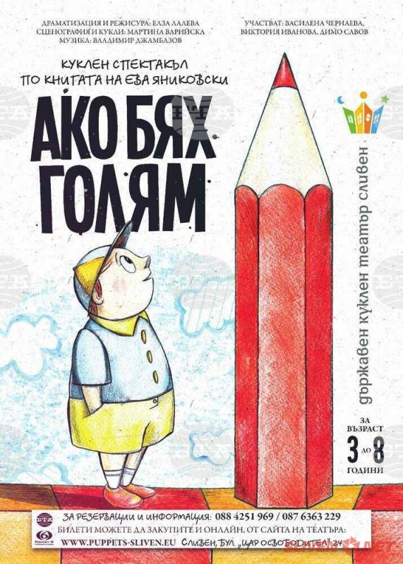 Държавният куклен театър в Сливен кани публиката на премиерния си спектакъл „Ако бях голям“ на 14 април, съобщиха за БТА от културния институт.