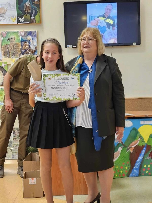 Виктория Стоянова от III "А" клас получи Специална награда за участие в ежегоден конкурс за детско и ученическо творчество "Лешоядите в природен парк "Сините камъни" по случай "Седмицата на гората 2024г." Поздравяваме я и ѝ пожелаваме участия и награди от много конкурси!