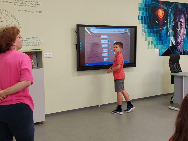 На 12.04.2024г. в STEM кабинета беше проведен урок по български език на тема „Части на речта – преговор“ с трети „б“ клас под ръководството на г-жа Мери Божкова. На изявата присъстваха ръководството на училището - г-жа Христова, г-жа Иванова и г-жа Георгиева, а също така и учители от начален и прогимназиален етап. Децата по увлекателен начин изпълняваха упражнение след упражнение в платформата MOZABOOK. След като преговориха основните понятия и норми, те с лекота изпълниха упражненията за домашна работа. Сравниха отговорите си в електронна среда - LIVEWORKSHEETS и получиха заслужени високи оценки за положените усилия и показаните знания, умения и компетенции.