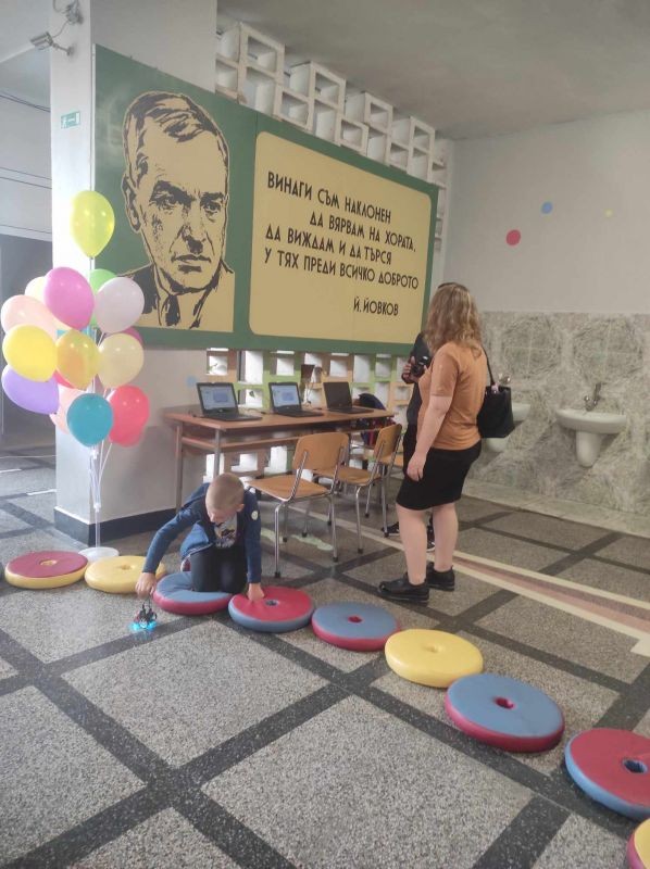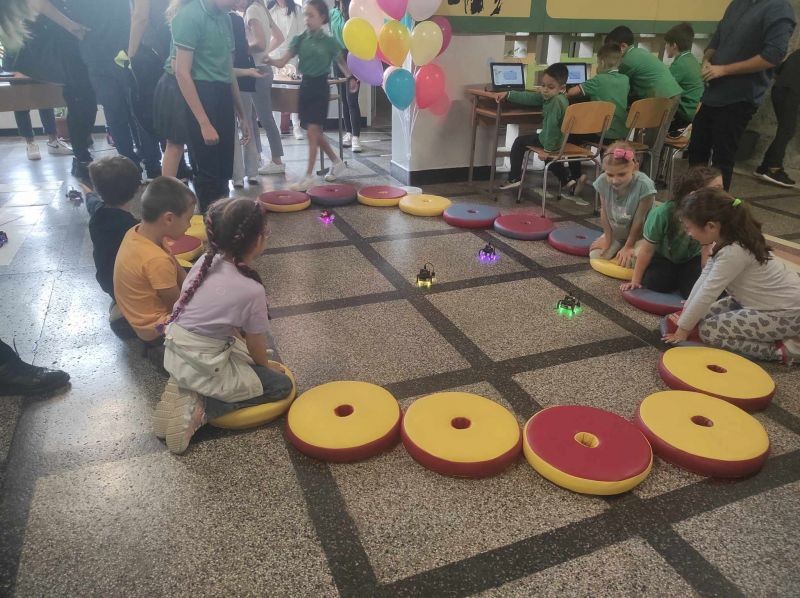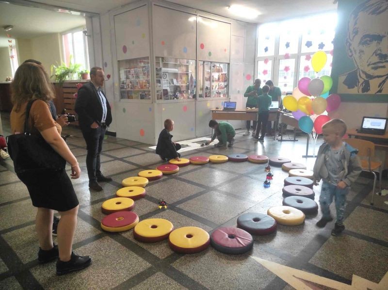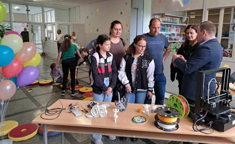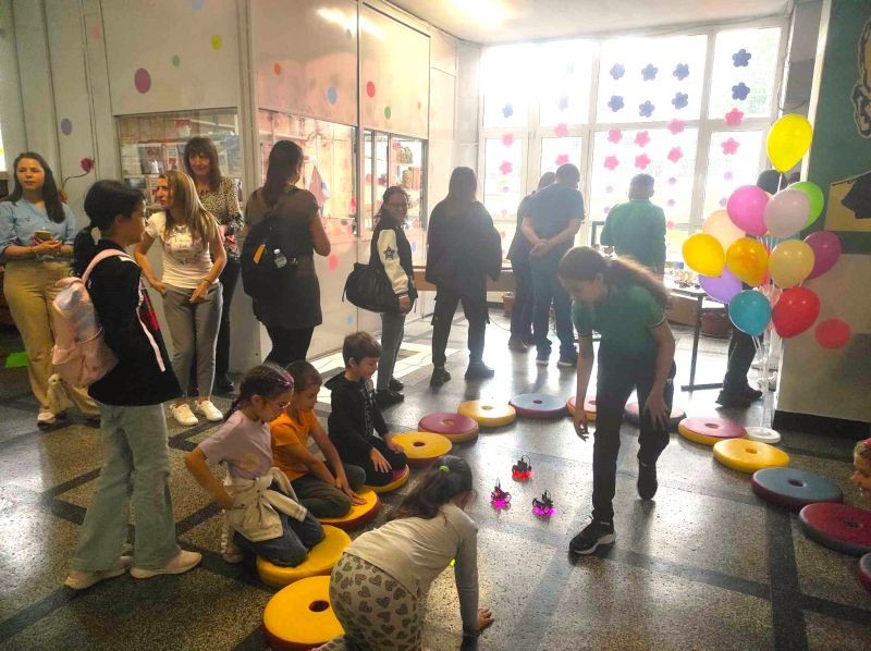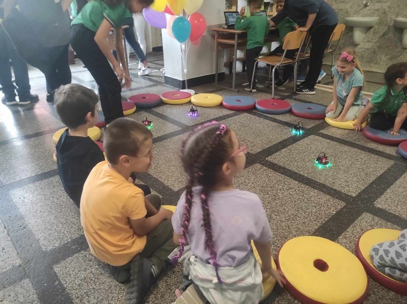 Във фоайето на първия етаж бъдещи първокласници и техните родители бяха посрещнати от по-големите ученици на училището, които демонстрираха роботизирани макети, изработени от самите тях. Представиха и роботчетата, които сами са програмирали. Показаха работа с 3D принтер.