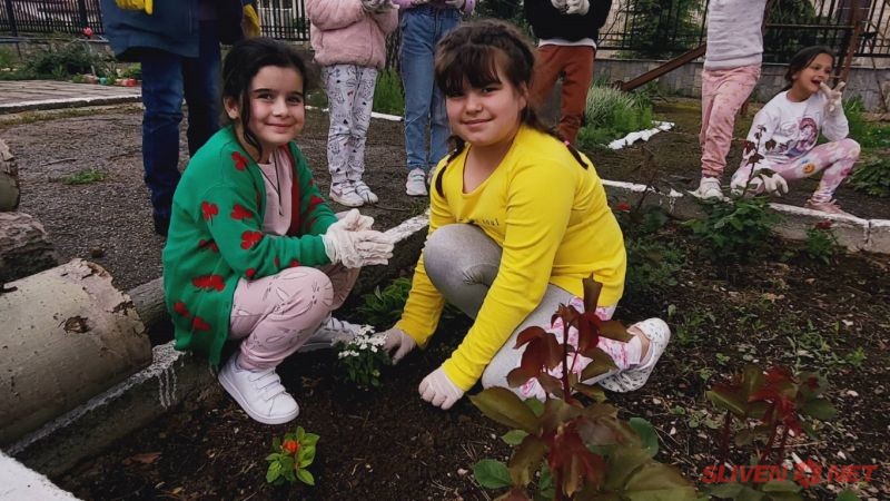 За няколко часа сръчните ръце на малчуганите успяха да разкрасят с красиви цветя пространствата, в които най-често пребивават, след което насочиха вниманието си в оцветяването на рисунки и изработването на колажи, посветени на Деня на Земята. Към подрастващите с активен труд по почистването на зелените площи и боядисването на пейки се присъединиха родители и възпитатели от градините в котленско. След поучителна презентация, служителите на читалището и библиотеката, също хванаха мотички и лейки, и заедно с децата излязоха сред дворните зелени площи. На учениците от Котел пък им показаха как да събират разделно отпадъци и да ги изхвърлят на определените за целта места, след което рисуваха колажи по темата.
