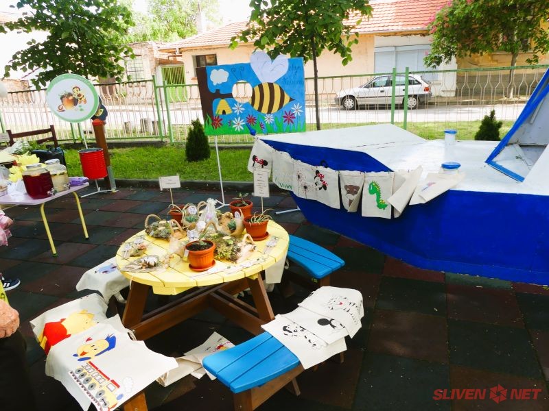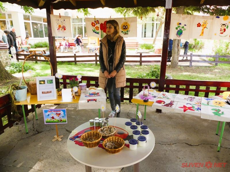 В пролетния 22 април - Денят на Земята, когато започват глобалните дни за действие, организирани от FEЕ - Фондация за екологично образование, учители и възпитаници на ДГ „Детски свят“ гр. Нова Загора организираха изложба - базар с продукти, свързани с биоикономиката. В късния следобед, в деня посветен на Земята, малчуганите и техните учители посрещаха своите гости в двора на детската градина, който се бе превърнал във вълшебно кътче със старателно подредени маси с био и еко производство. Сред присъстващите бяха кметът на община Нова Загора Галя Захариева и нейният екип, които с любопитство разгледаха красивите изделия и отнесоха със себе си от специално изработените продукти. В изложбата със свое производство се включиха възпитаниците на група „Пчеличка“, които предлагаха продукти от био мед и разнообразни сладки изкушения, приготвени по креативен начин, цветя и еко украшения. От своя страна техните приятели от група „Мечо Пух“ бяха изложили в своето еко кътче ръчно рисувани торбички, кисийка от еко материал, пълна с разнообразни билки, семена от медоносни цветя, свещи от пчелен восък. На своя щанд палавниците от група „Калинка“ демонстрираха бурканчета със самардала, ръчно рисувани торбички от малчуганите, ключодържатели от дърво, био мас, водни лилии и луфа от семейство „Тиквови“, което е едногодишно растение, намиращо приложение в бита на човека като екологична гъба за баня или в домакинството. В организираната изложба - базар се включиха и родители от всички групи от ДГ „Детски свят“, които бяха вложили много любов и творчество в своите продукти.