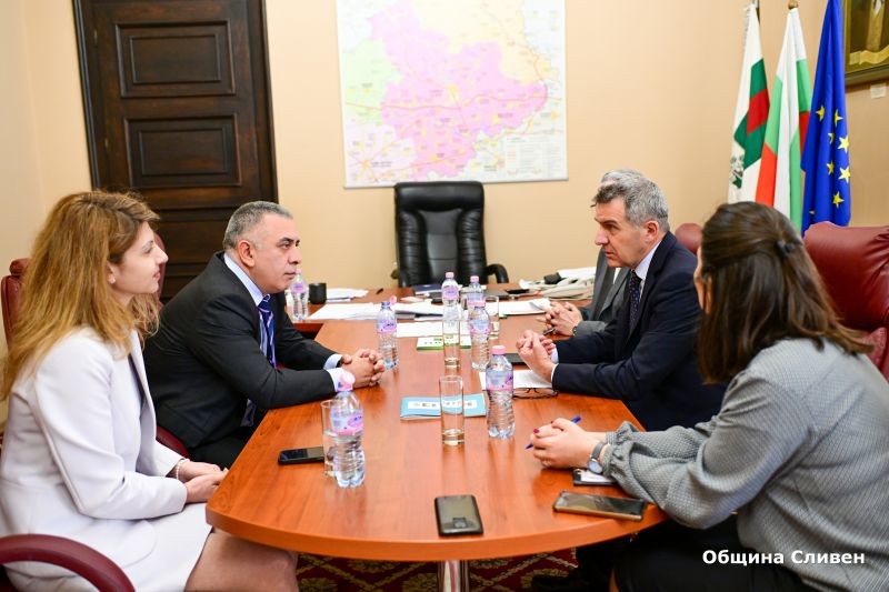 Двамата разговаряха за възможностите за сътрудничество в образованието, културата и икономиката. Стефан Радев запозна госта с проекта на Община Сливен за Индустриалния парк и възможностите за инвестиции в региона.