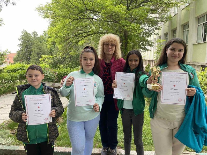 Група ученици от Vа взеха участие в традиционното Общинско състезание за ученически екипи по първа помощ, което се проведе на 25.04.2024г. от Областният съвет на Български червен кръст гр. Сливен.