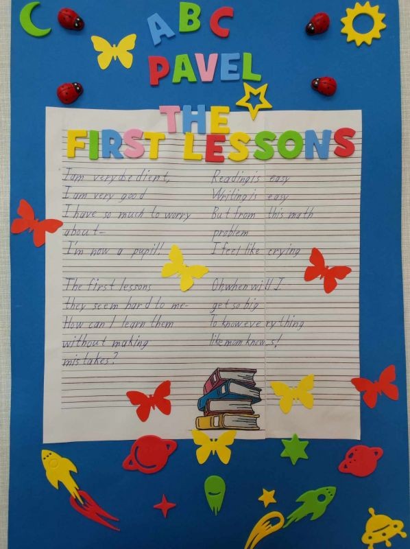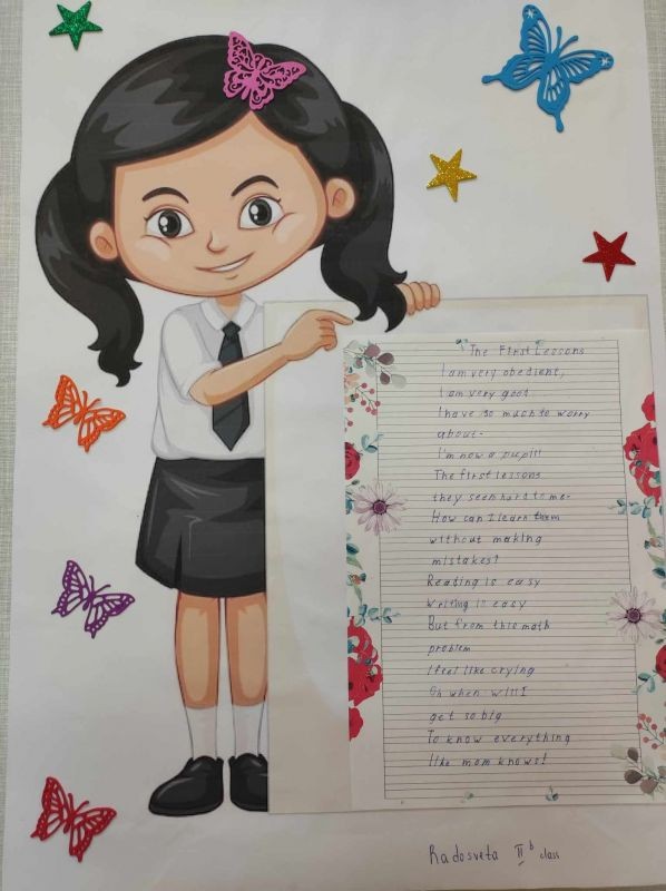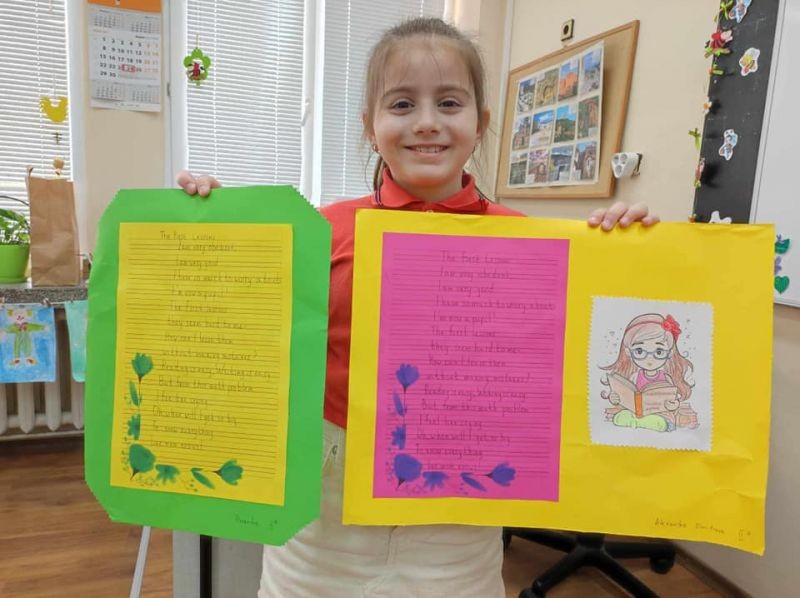 По повод Дните на Багряна учениците от 2. клас се включиха с изложба по краснопис на английски език. С много усърдие и желание те написаха стихотворението "Първите уроци" на Елисавета Багряна, но в превод на английски език. По усмихнатите им лица и по прекрасните творения можем да потвърдим, че за тях английският език ще бъде изучаван с желание и ще им отваря много врати в бъдещите начинания.