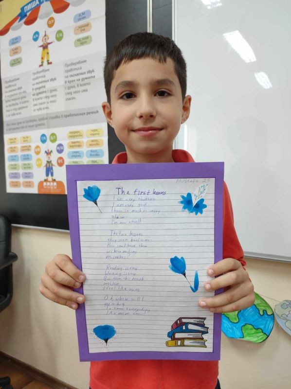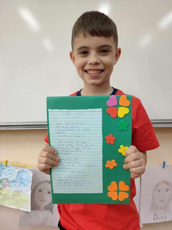 По повод Дните на Багряна учениците от 2. клас се включиха с изложба по краснопис на английски език. С много усърдие и желание те написаха стихотворението "Първите уроци" на Елисавета Багряна, но в превод на английски език. По усмихнатите им лица и по прекрасните творения можем да потвърдим, че за тях английският език ще бъде изучаван с желание и ще им отваря много врати в бъдещите начинания.