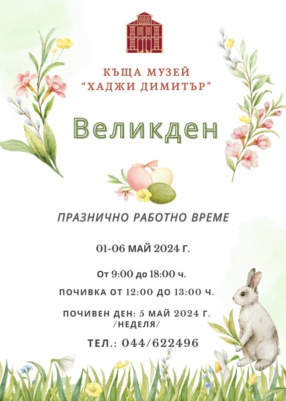 Ще Ви очакваме и през празничните почивни дни на месец май в къща музей "Хаджи Димитър".