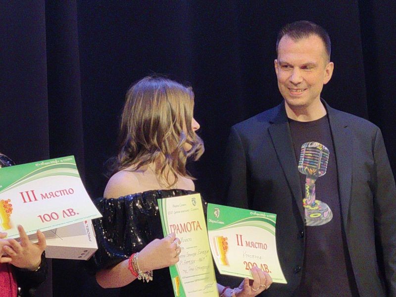 Наградата на Общински съвет-Сливен връчи председателят на местния парламент Димитър Митев. Тя отиде при Мария Петрова от школата за поп и рок изпълнители „Ритъм“ в Сливен.