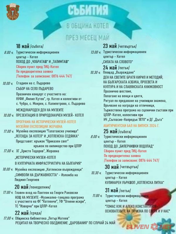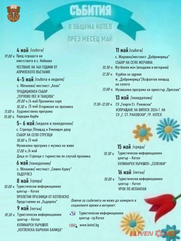 СЪБИТИЯ В ОБЩИНА КОТЕЛ ПРЕЗ МЕСЕЦ МАЙ