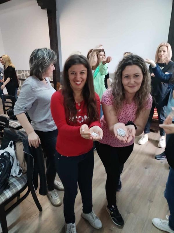 Екипът на ОУ „Елисавета Багряна” гр. Сливен осъществи обучение на тема : „Ефективни подходи за преодоляване на стреса и агресията в училище”. Съчетавайки знанията и уменията, получени от проведените курсове по програма Еразъм +, бяха осъществени дейности за преодоляване на натрупания стрес и напрежение. Учители, административен и помощен персонал заедно усвоиха нови умения за прилагане на неформални методи, свързани с възпитанието на учениците в дух на толерантност и уважение към чуждото мнение. Реализирани бяха различни, интересни, енергизиращи и релаксиращи упражнения.