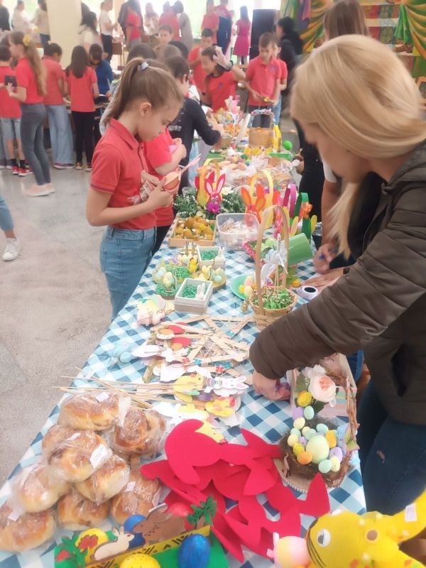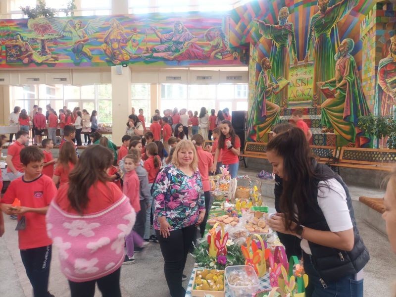 На форума в училището бяха подредени ръчно изработени от учениците и родителите тематични сувенири. Освен красиво украсени великденски яйца, можеха да се видят шарени кошнички, пролетни цветя, картички, бижута, лакомства и безброй други ръчно изработени предмети.