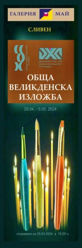 18 художници от Сливен се включиха в обща Великденска изложба в галерия "Май", организирана от Дружеството на художниците и Съюза на българските художници - Представителство Сливен. Събитието е част от програмата на Община Сливен по повод Великденските празници.