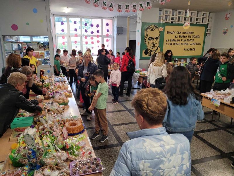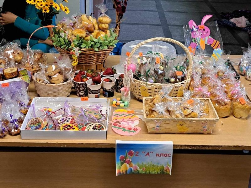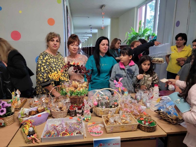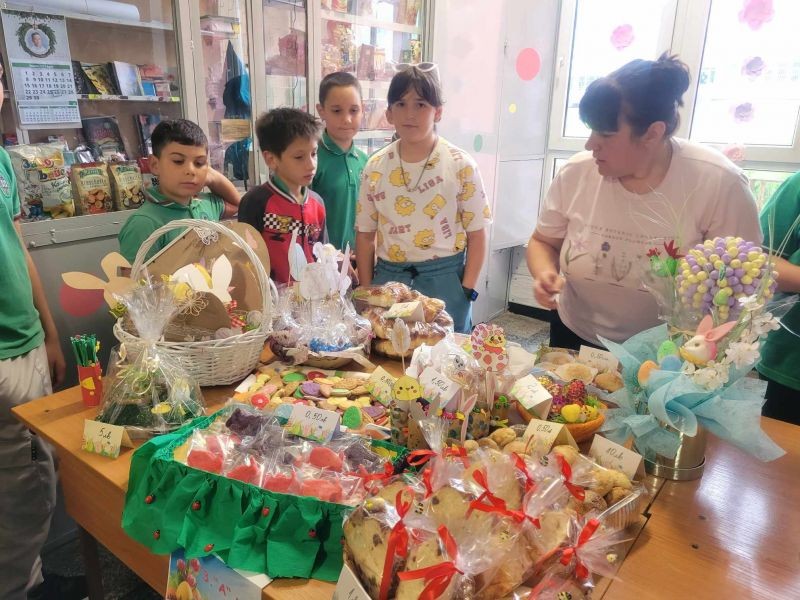 В специално обособено пространство във фоайето на училището всички класове представиха ръчно изработени тематични сувенири, обвързани с предстоящия празник. Освен красиво украсени великденски яйца, децата презентираха и вкусни сладки, ароматни козунаци и хрупкави ореховки.