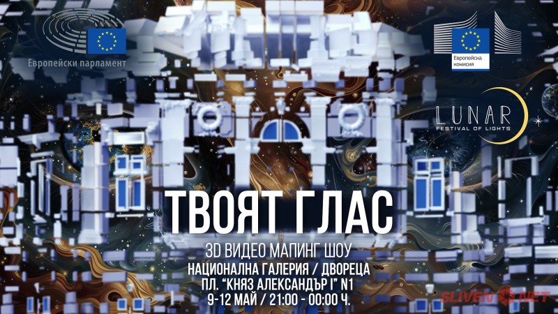 Денят на Европа ще бъде отбелязан с триизмерно видео мапинг шоу „Твоят глас“ на фасадата на Национална галерия - Двореца на пл. „Княз Александър I“ на 9 май с начало от 21.00 ч. То е част от третото издание на Фестивала на светлините LUNAR. Организатор на спектакъла „Твоят глас“ е Бюрото на Европейския парламент в партньорство с Представителството на Европейската комисия в България.