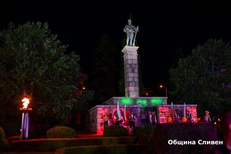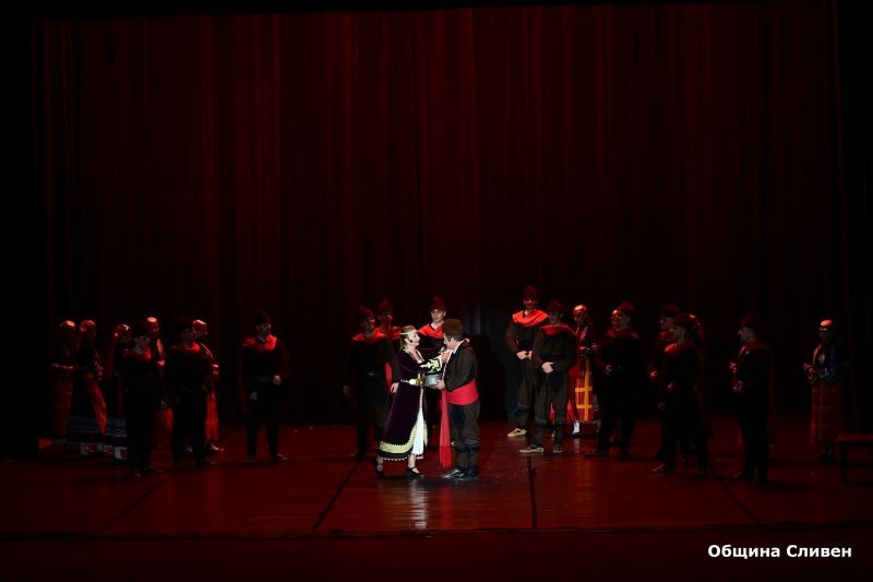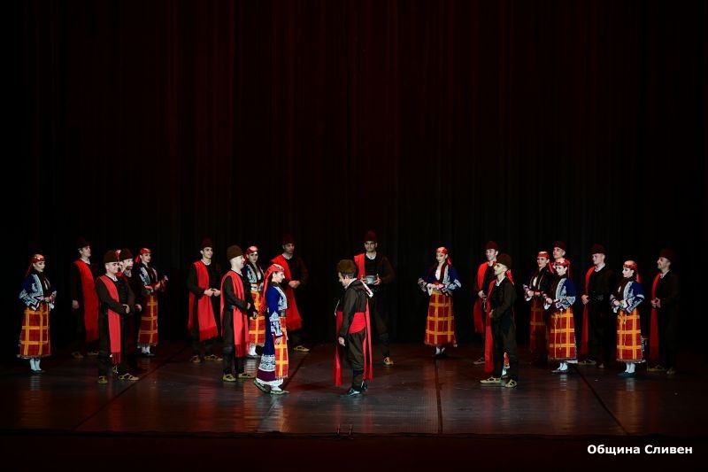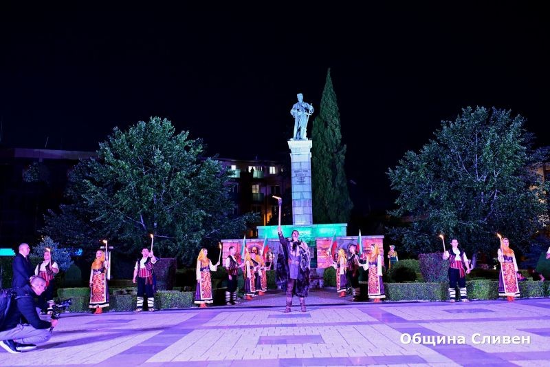 Вечерта започна с концерт-спектакъл „Обичаите на България“ на Национален фолклорен ансамбъл „Българе“. Събитието препълни голямата зала на Драматичен театър „Стефан Киров“. Артистите пресъздадоха по свой начин различни обичаи от бита на българите като коледуване, лазарки, крадене на булка, Гергьовден, Прошка и обичаите на Сирни Заговезни. Концертът завърши със сливенска сватба по Димитровден, а зрителите дълго аплодираха на крака невероятния талант на хореографите. Цветя бяха поднесени от името на кмета Стефан Радев, председателя на Общински съвет-Сливен Димитър Митев и от областния управител Чавдар Божурски.