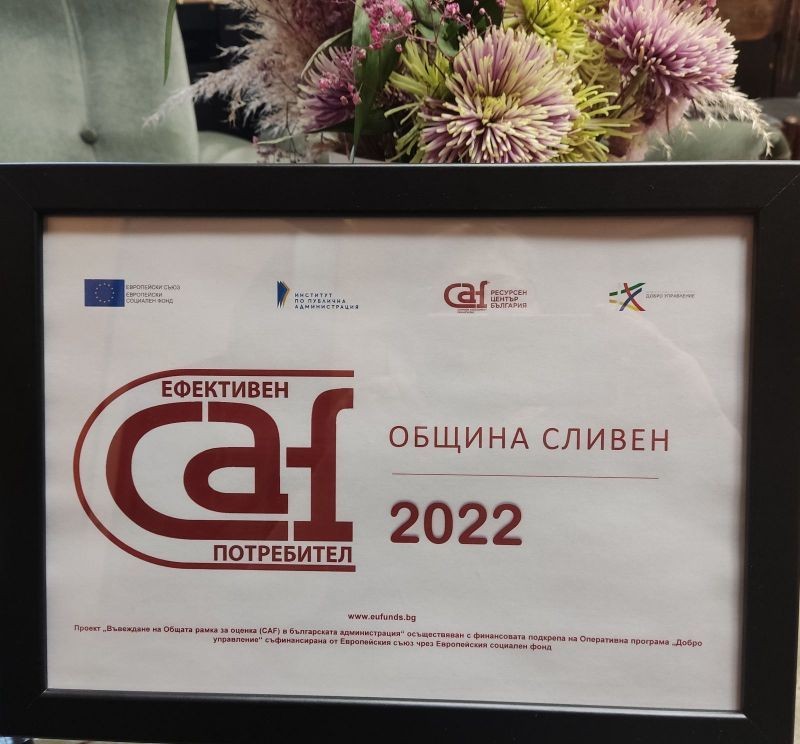 Община Сливен стартира процес по повторно прилагане на европейския модел за качество „Обща рамка за оценка – CAF“ (Common Assessment Framework). Моделът CAF 2020 е инструмент за цялостно управление на качеството в публичния сектор. Целта е осигуряване на висок обществен резултат, чрез непрекъснато подобрение на управлението и качеството на административната дейност и подобряване ефективността на всички нива и процеси в администрацията. Той дава възможност Общината да бъде разгледана и оценена в нейната цялост от вътрешен екип, основавайки се на цикъла „Планирай - направи - провери - действай” (PDCA).