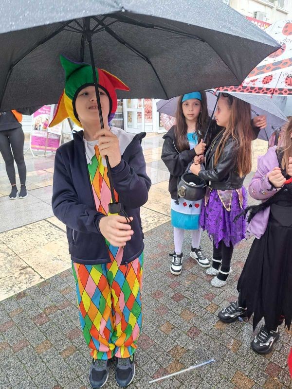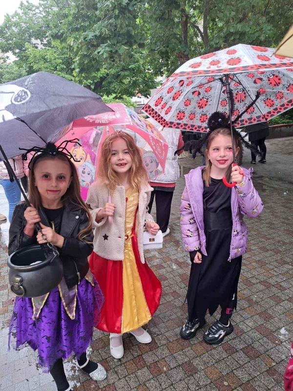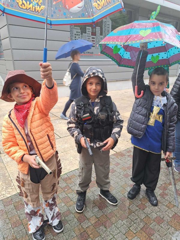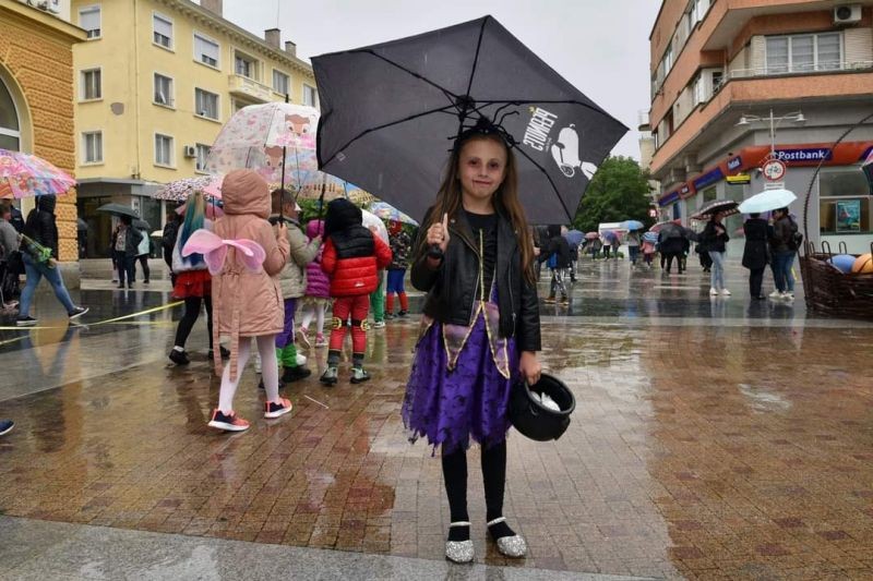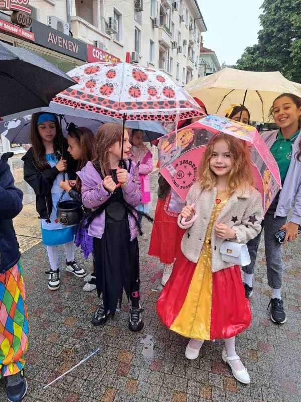 Дъждовното време не попречи на децата да влязат в различни роли на приказни герои и да покажат своите театрални умения и любовта си към детската книга.