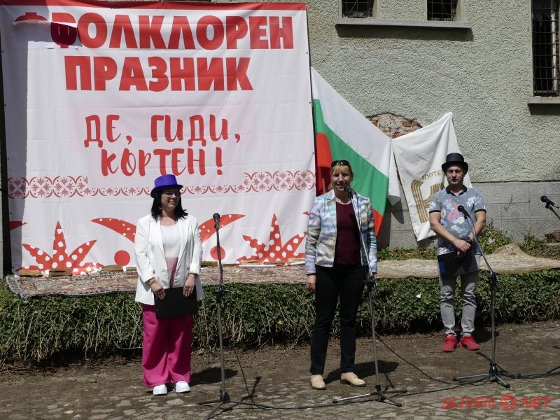 По повод храмовия празник на с. Кортен, на 11 май се състоя първият Фолклорен празник "Де, гиди, Кортен", организиран от НЧ "Светлина-1872" с подкрепата на Община Нова Загора и Кметство с. Кортен. Домакин на културното събитие бе Вокална група "Златен грозд", която тази година отбелязва двадесет годишен юбилей от своята творческа дейност. Дошли да се насладят на красотата на българското народно пеене, сред присъстващите бяха кметът на Община Нова Загора Галя Захариева и нейният екип, общински съветници и кметове на населени места от общината. Г-жа Захариева изрази своята благодарност към организаторите за създаването на този празник и увери присъстващите, че ръководството на Община Нова Загора винаги ще подкрепя подобни инициативи, защото именно те ни съхраняват и пазят като народ. В музикалния празник премериха сили и показаха своите певчески умения: Женски хор „Кохортис” с ръководител Валентина Таукчи при НЧ „Светлина - 2000“, с. Кортен; Певческа група „Селски хубавелки“ с ръководител Младен Петков при НЧ „Надежда - 1902“, с. Полско Пъдарево; Певческа група "Златна праскова" при НЧ "П. Хилендарски- 1928", с. Червенаково; Женска фолклорна група "Тунджа пее" с ръководител Дяко Дяков при НЧ "П. Енев - 1932",с. Баня и Женска певческа група с ръководител Цанка Атанасова при НЧ "Отец Паисий-1927", с. Мечка, обл. Русе. Даровитите изпълнители бяха оценявани от жури в състав: Георги Петков - музикант, хореограф и дългогодишен художествен ръководител на Вокална група "Златен грозд" и Пепа Коджабашева - гъдулар и народна певица. Специален подарък към присъстващите поднесоха талантите от Танцов клуб "Балига“ към НЧ „Светлина – 1872“, с ръководител Росица Мангърова, които възхитиха с невероятните си танцови изпълнения. Всички участници получиха дипломи и подаръчни статуетки, осигурени от НЧ "Светлина-1872", с. Кортен. Специалната награда за "Най-добра певческа група" и приз "Де, гиди, Кортен " бяха връчени на Женска фолклорна група "Тунджа пее" при НЧ "П. Енев - 1932", с. Баня.