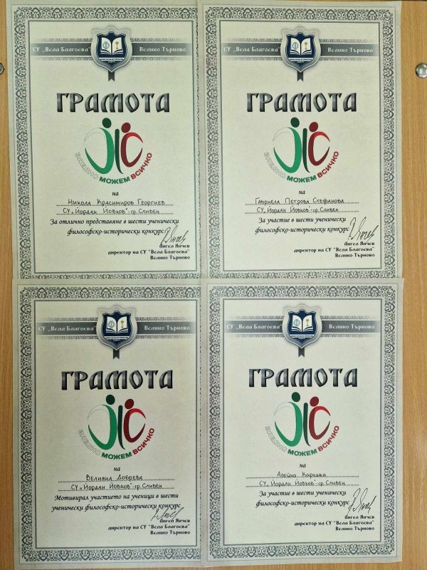 Никола Георгиев и Габриела Стефанова от 9. клас; Алейна Караджа от 10. клас.