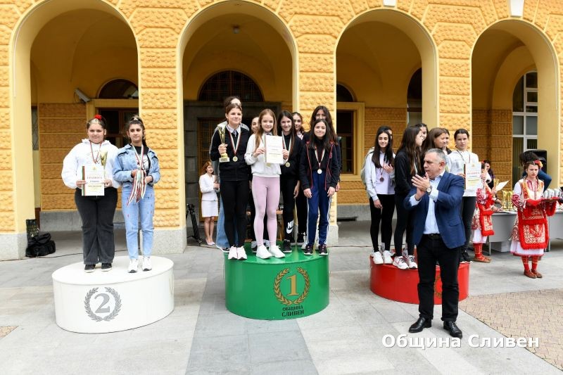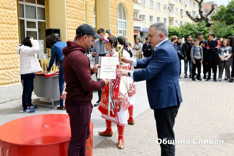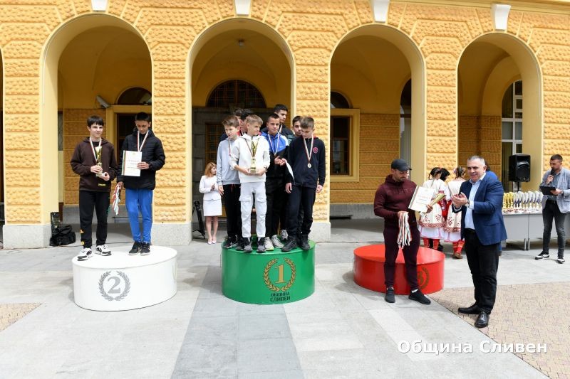 Стефан Радев, заместник-кметът Пепа Чиликова и директорът на Центъра за подкрепа за личностното развитие – Детски комплекс-Сливен - Христо Котов, връчиха наградите – 120 купи и 500 медала.