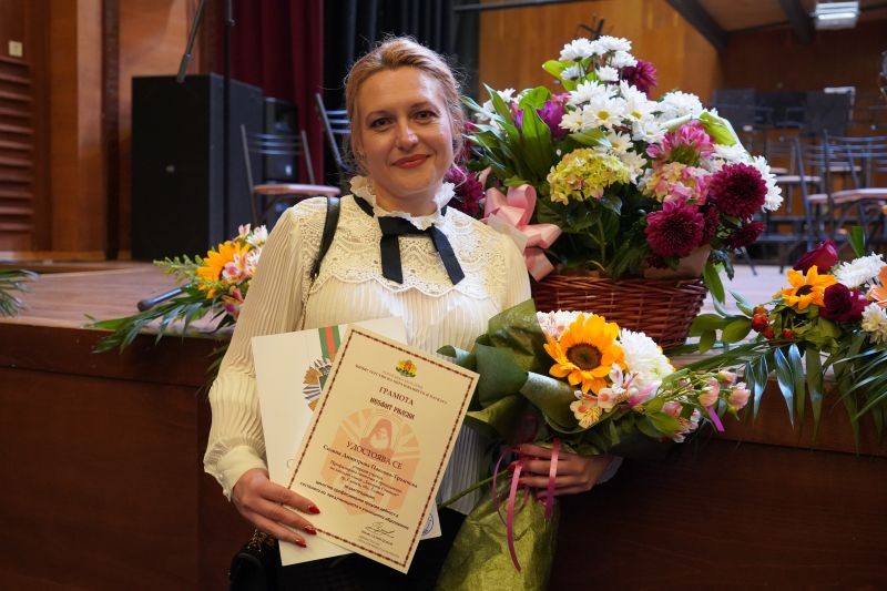 Грамота на Община Сливен за постигнати отлични резултати от техните ученици и принос в развитието на образованието получиха Силвия Иванова, учител по немски език и Силвия Павлова, учител по английски език.