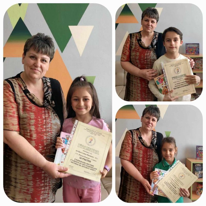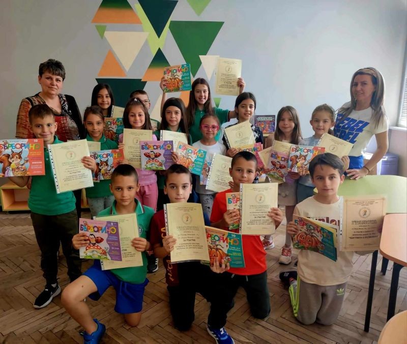 Учениците, които участваха в карнавалното шествие, посветено на XXVI Национален фестивал на детската книга, получиха своите грамоти за участие от РБ "Сава Доброплодни".