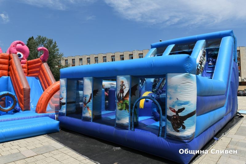 Три големи надуваеми атракциона вече радват децата на Сливен. Съоръженията са разположени на площад „Хаджи Димитър“ и са организирани от Община Сливен по повод Международния ден на детето – 1 юни. Всеки малчуган, който иска да се забавлява, може да го направи напълно безплатно за един час, за да не се получава струпване. Възрастовата граница, за която е позволено ползването на надуваемите забавления, е от 3 до 10-годишна възраст. Атракционите могат да се посетят днес до 22 часа и утре от 9 до 21 часа.