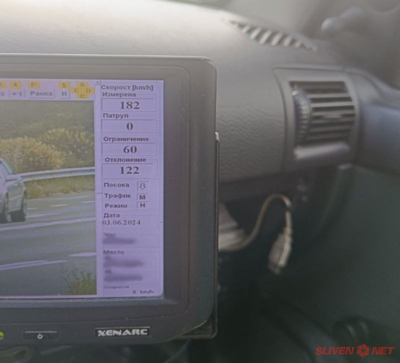 Вчера на главен път е засечена скорост от 182 км.ч при ограничение 60 км.ч.. Водачът го грози глоба 1800 лева, ако му е първо нарушение, при повторност глобата се удвоява.